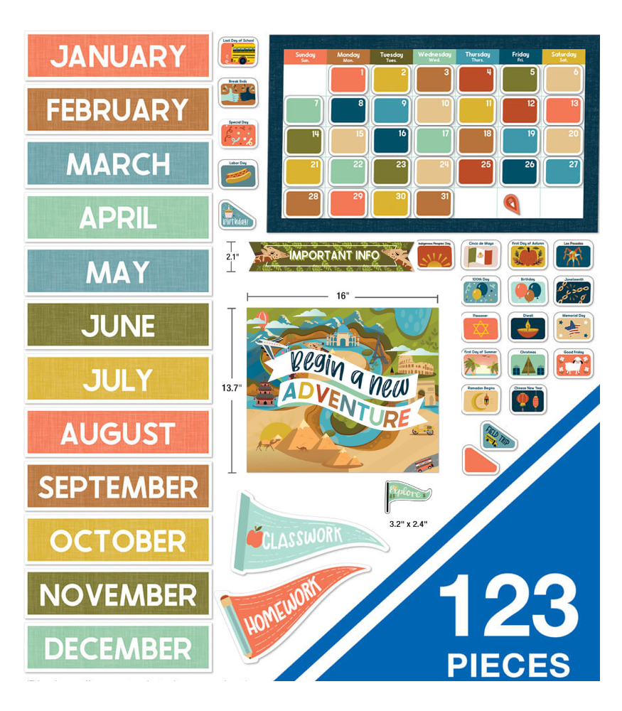 - CD-110556 Let’s Explore Calendar Bulletin Board Set