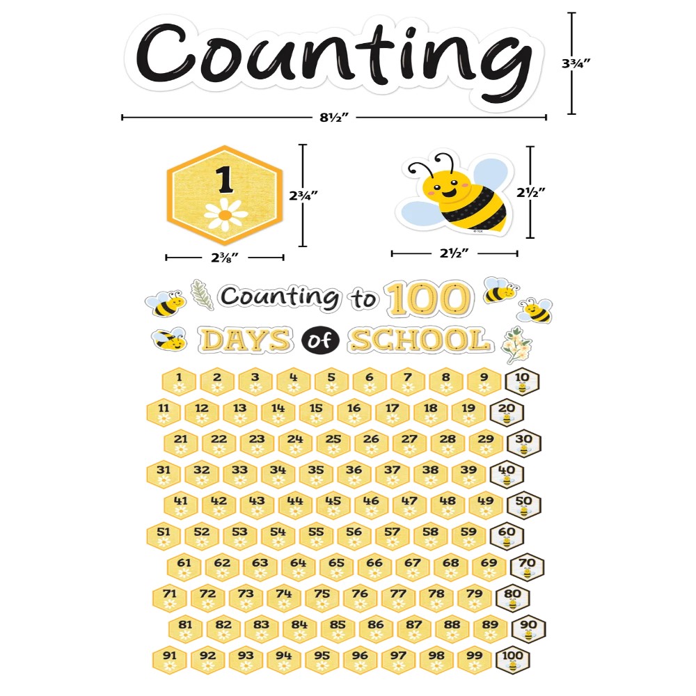 - TCR-6911 Buzzing Bees Counting to 100 Days Mini Bulletin Board