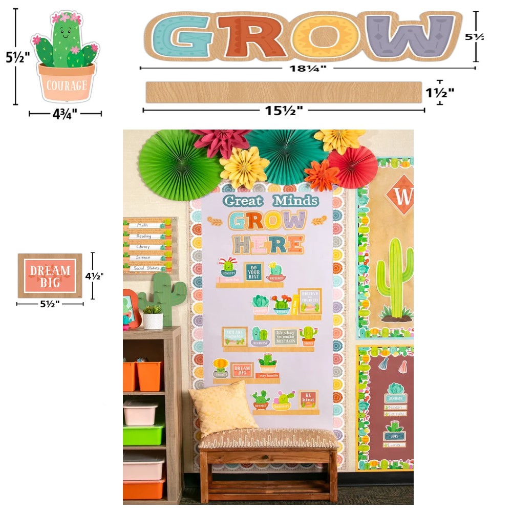 - TCR-6959 Happy Cactus Crew Great Minds Grow Here Mini Bulletin Board