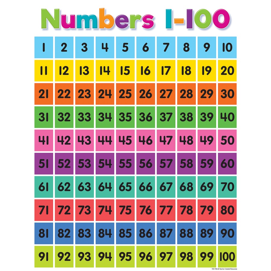 - TCR-7106 Colorful Numbers 1–100 Chart