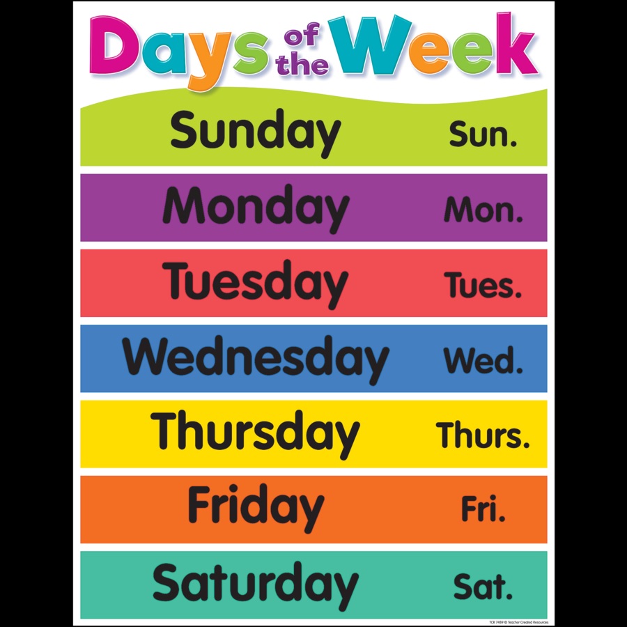 - TCR-7489 Colorful Days of the Week Chart