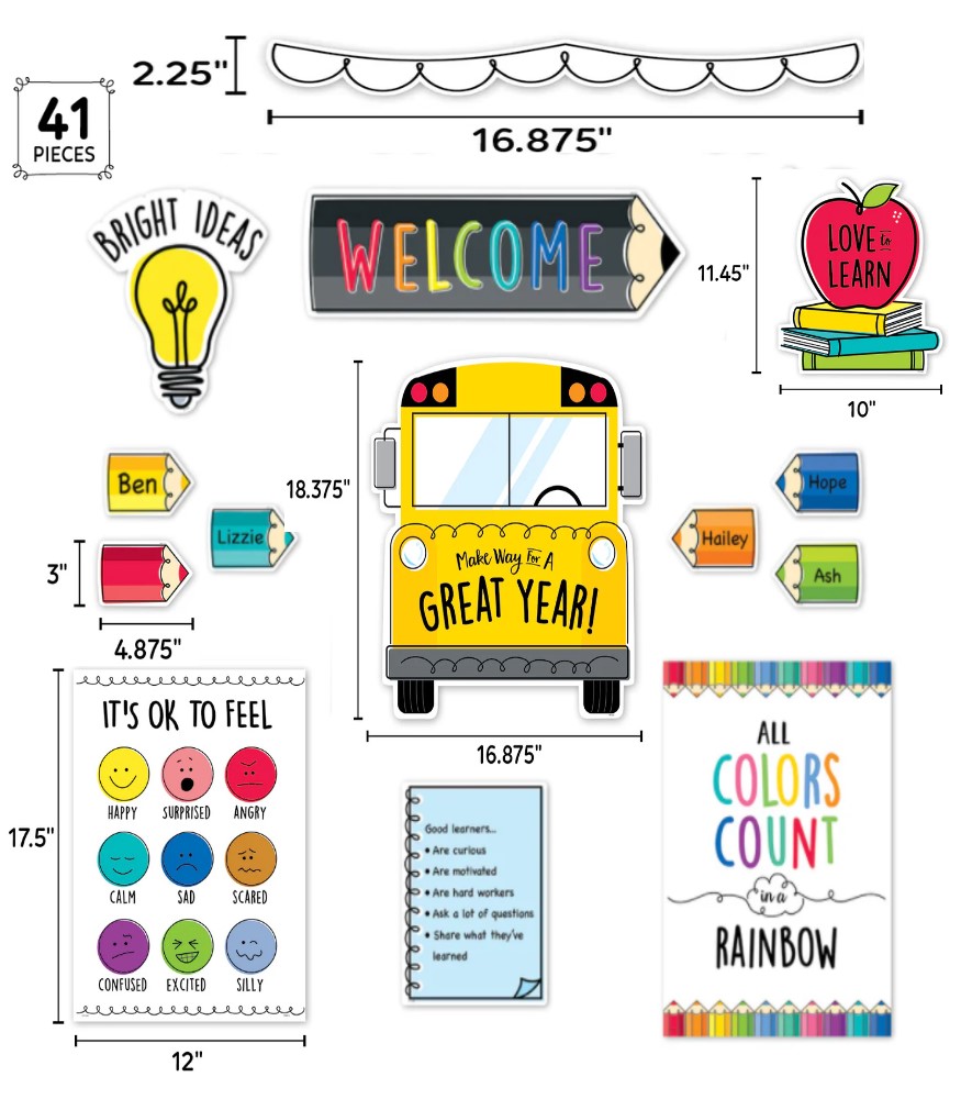Use recortes decorativos para dar vida a paredes de sus aulas y puertas, como rotuladores en objetos de clase y escritorios, premios, gafetes o realces en carteleras educativas.